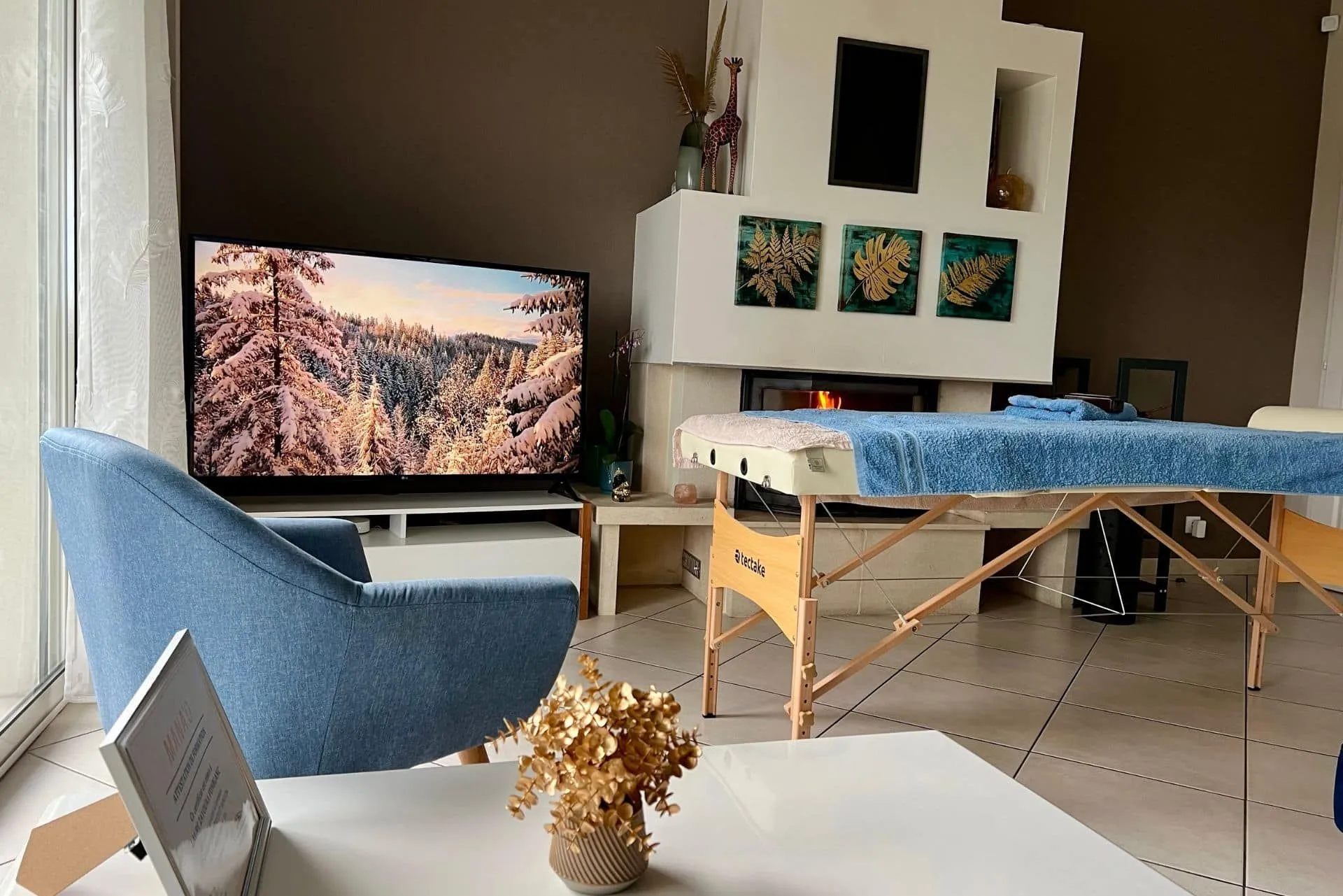 Pendant la séance, vous serez confortablement installé(e) sur la table de massage, enveloppé(e) de serviettes pour préserver votre confort et votre intimité. Seule la zone à traiter sera découverte à chaque étape, garantissant ainsi votre bien-être tout au long du soin.